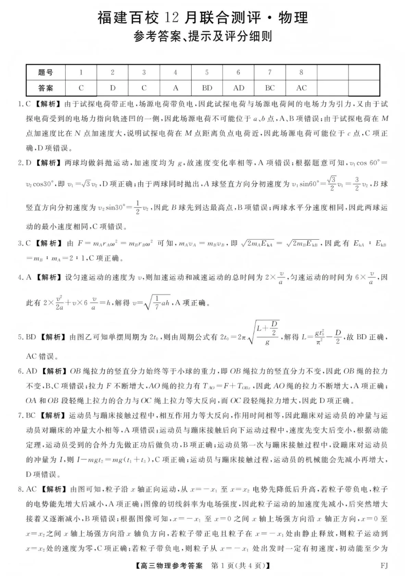 福建省百校2026届高三上学期12月联合测评 物理答案.pdf