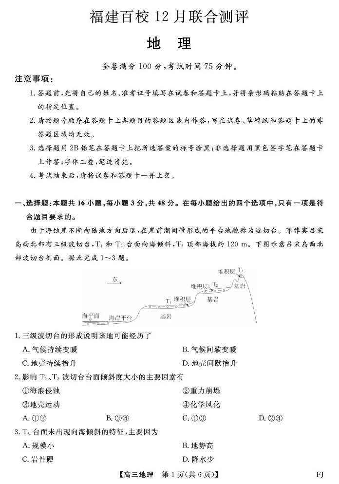 福建省百校2026届高三上学期12月联合测评 地理.pdf