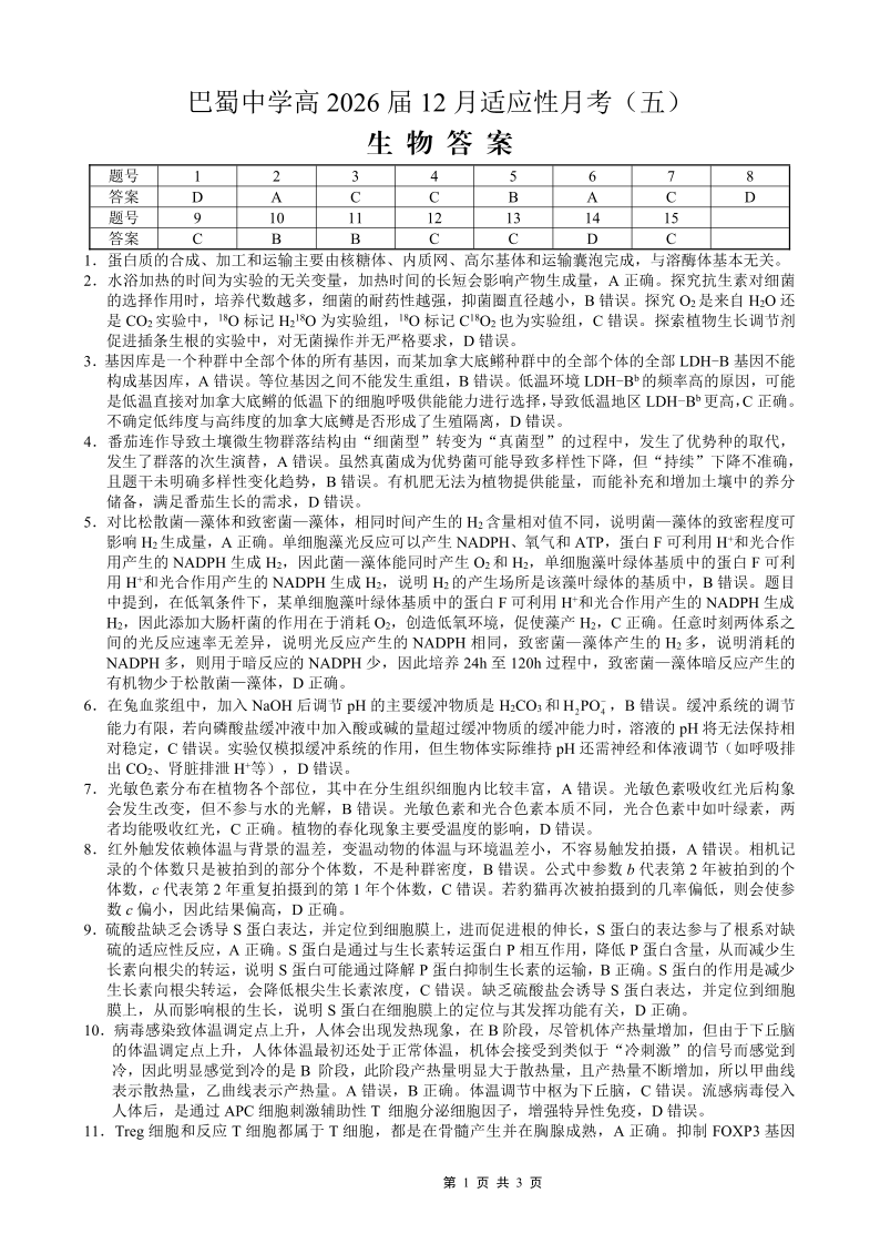 重庆市巴蜀中学2026届高考适应性月考卷(五)生物答案.pdf