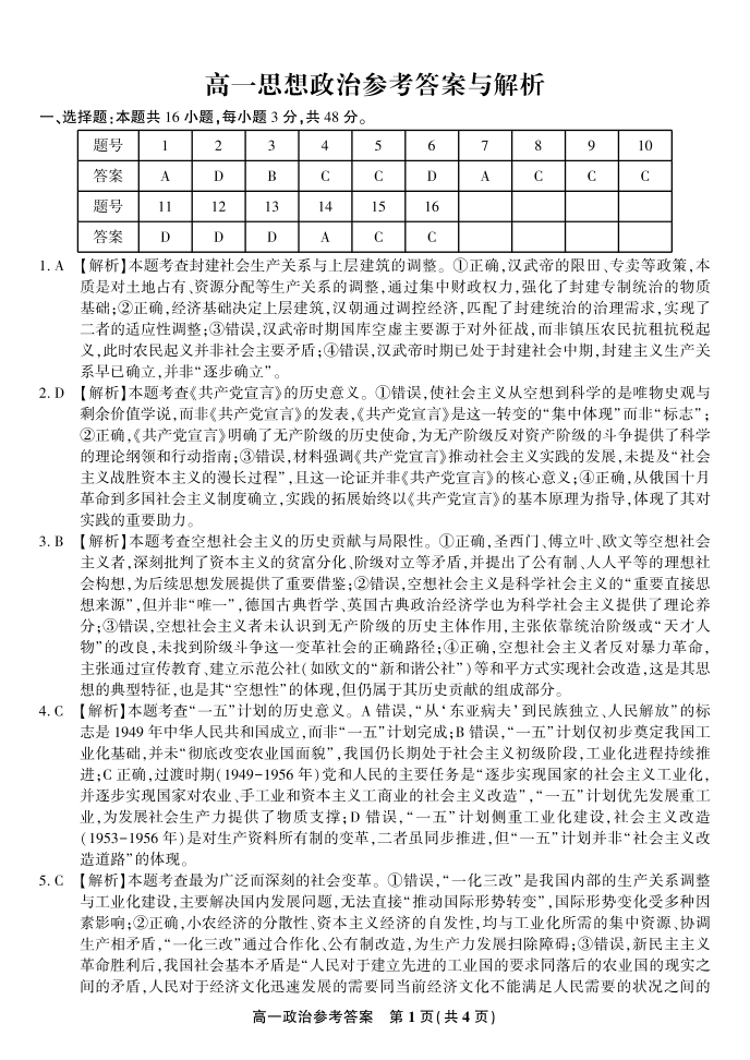 安徽省皖江名校联盟2025-2026学年高一上学期12月联考 政治答案.pdf