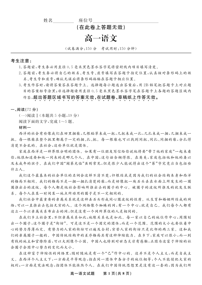 安徽省皖江名校联盟2025-2026学年高一上学期12月联考 语文.pdf