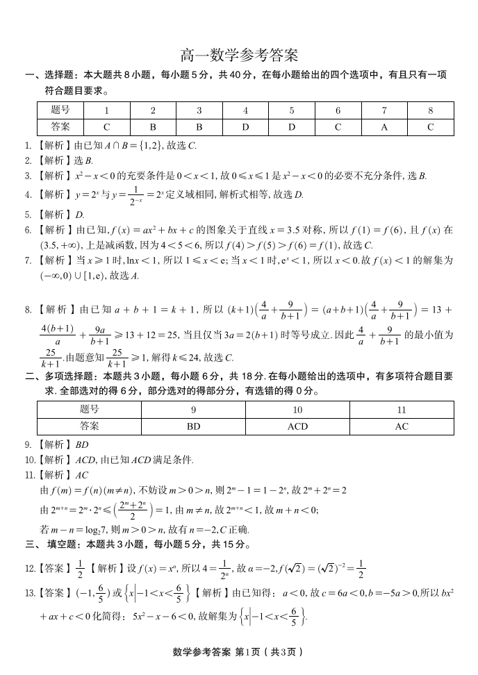 安徽省皖江名校联盟2025-2026学年高一上学期12月联考 数学答案.pdf