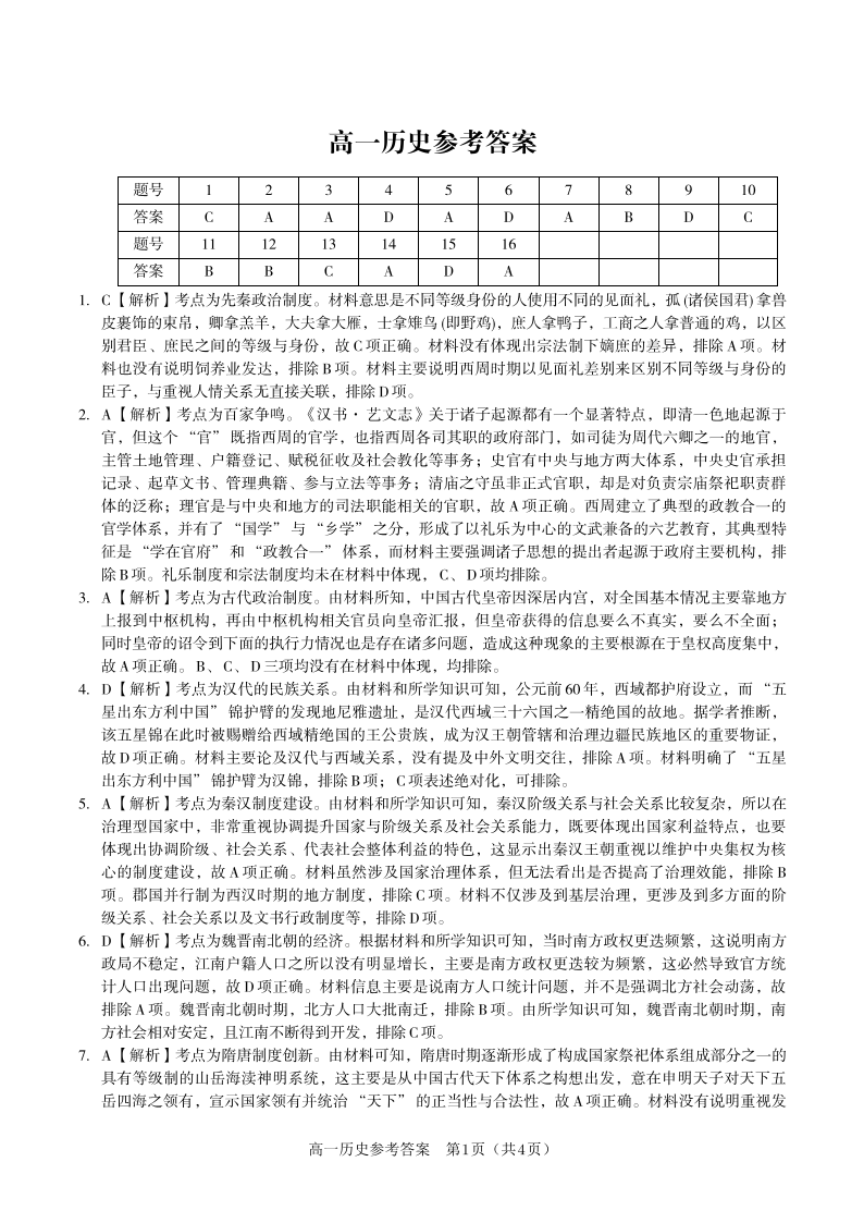 安徽省皖江名校联盟2025-2026学年高一上学期12月联考 历史答案.pdf
