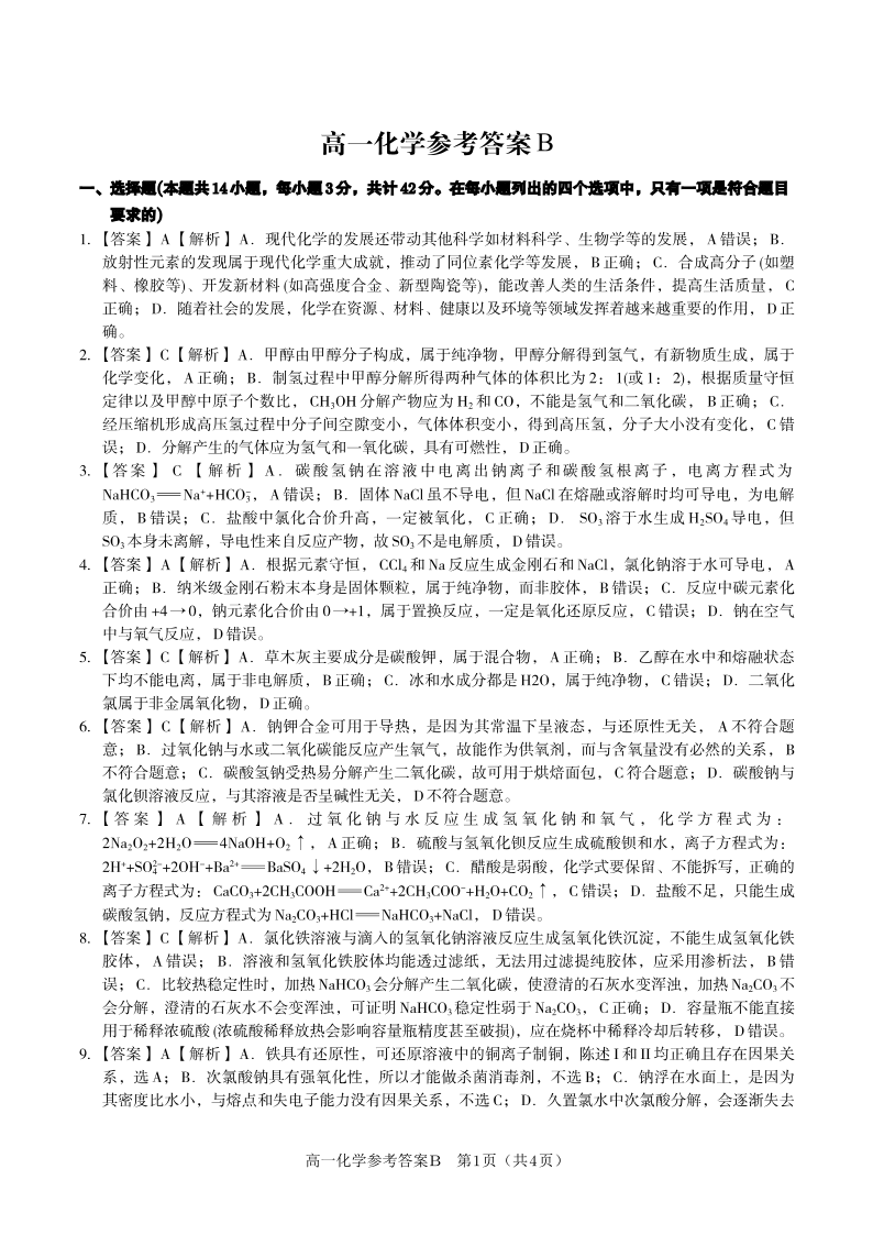 安徽省皖江名校联盟2025-2026学年高一上学期12月联考 化学(B卷)答案.pdf
