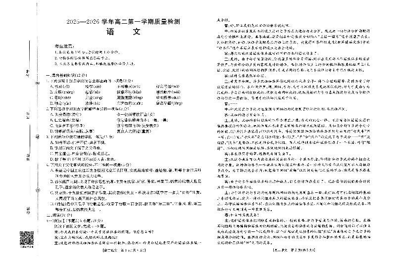 福建省南平市2025一2026学年高二年级第一学期质量检测 语文试题(含答案).pdf