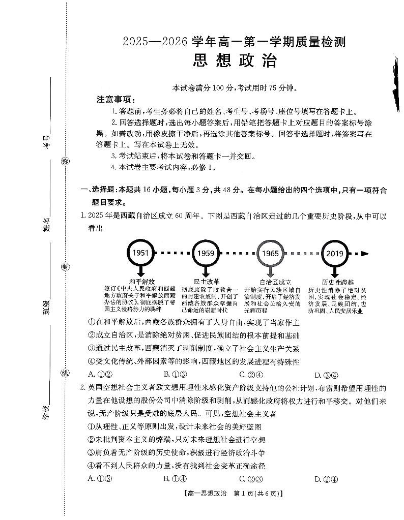 福建省南平市2025一2026学年高一年级第一学期质量检测 政治试题(含答案).pdf