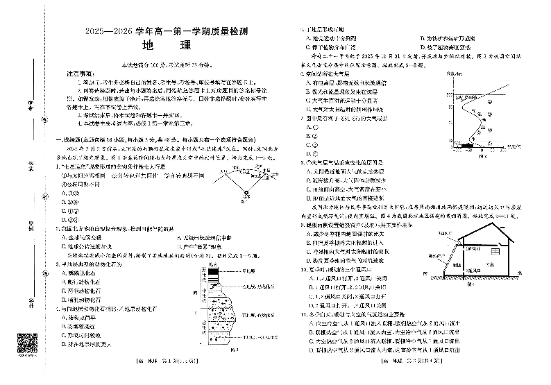 福建省南平市2025一2026学年高一年级第一学期质量检测 地理试题(含答案).pdf