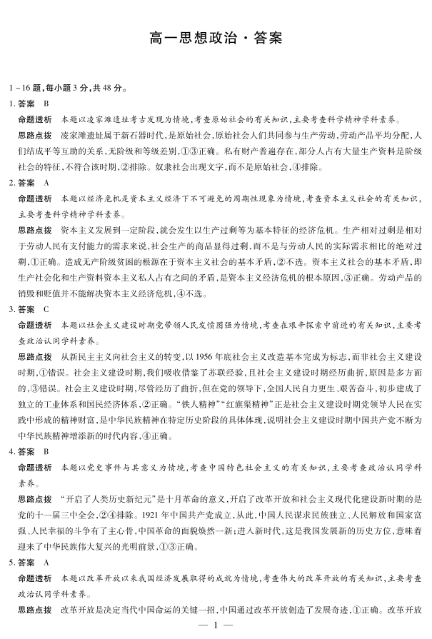安徽省(合肥六中)特色高中教研联谊会联考2025-2026学年高一上学期12月月考 政治答案.pdf