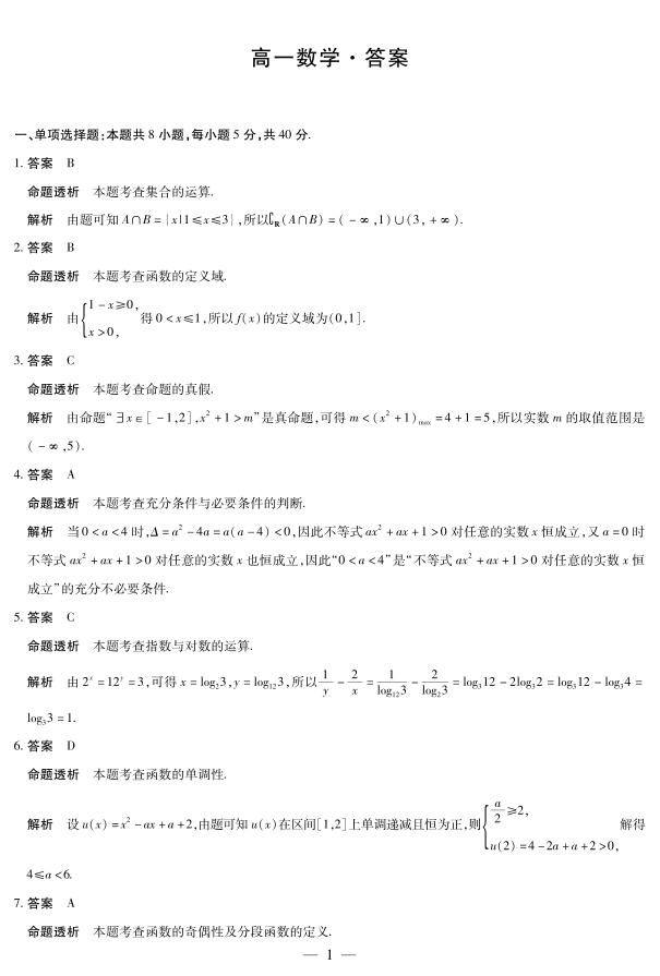 安徽省(合肥六中)特色高中教研联谊会联考2025-2026学年高一上学期12月月考 数学答案.pdf