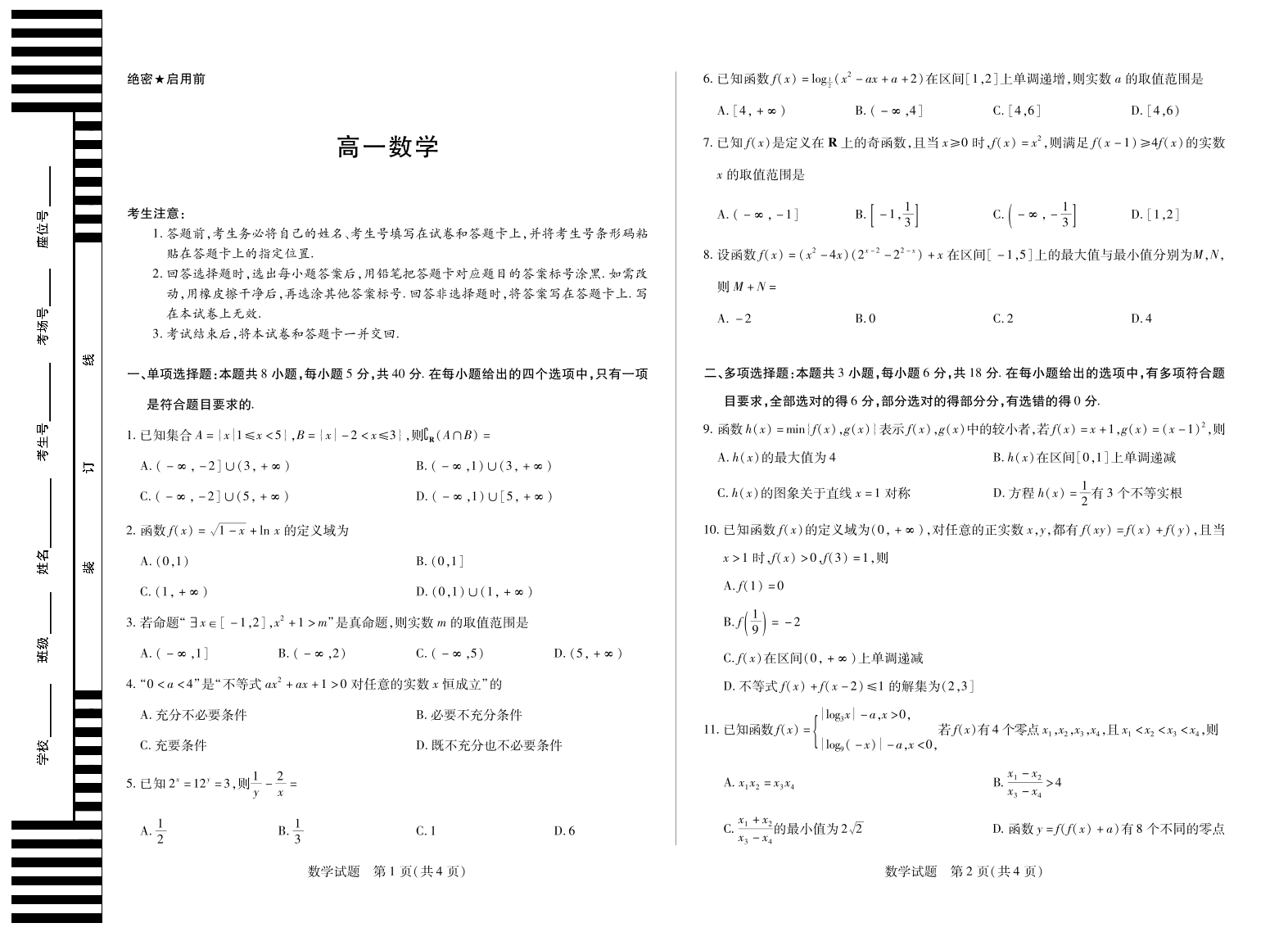 安徽省(合肥六中)特色高中教研联谊会联考2025-2026学年高一上学期12月月考 数学.pdf