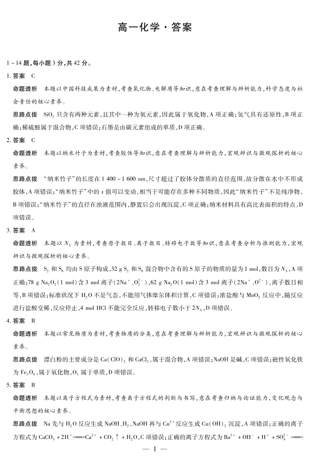 安徽省(合肥六中)特色高中教研联谊会联考2025-2026学年高一上学期12月月考 化学答案.pdf