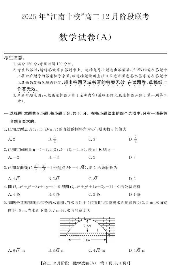 安徽省“江南十校”2025-2026学年高二12月阶段联考 数学.pdf
