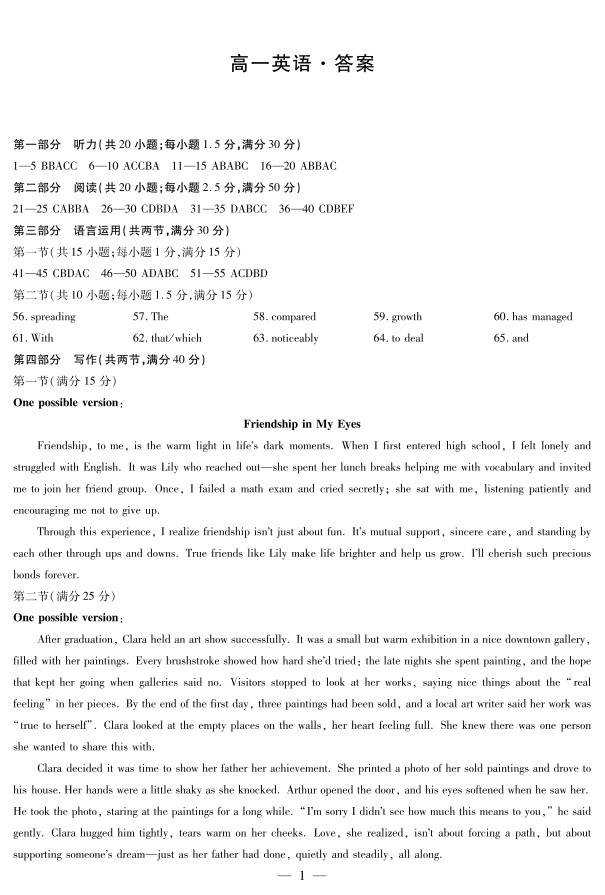 湖南省湘一联盟2025-2026学年高一上学期12月月考 英语答案.pdf