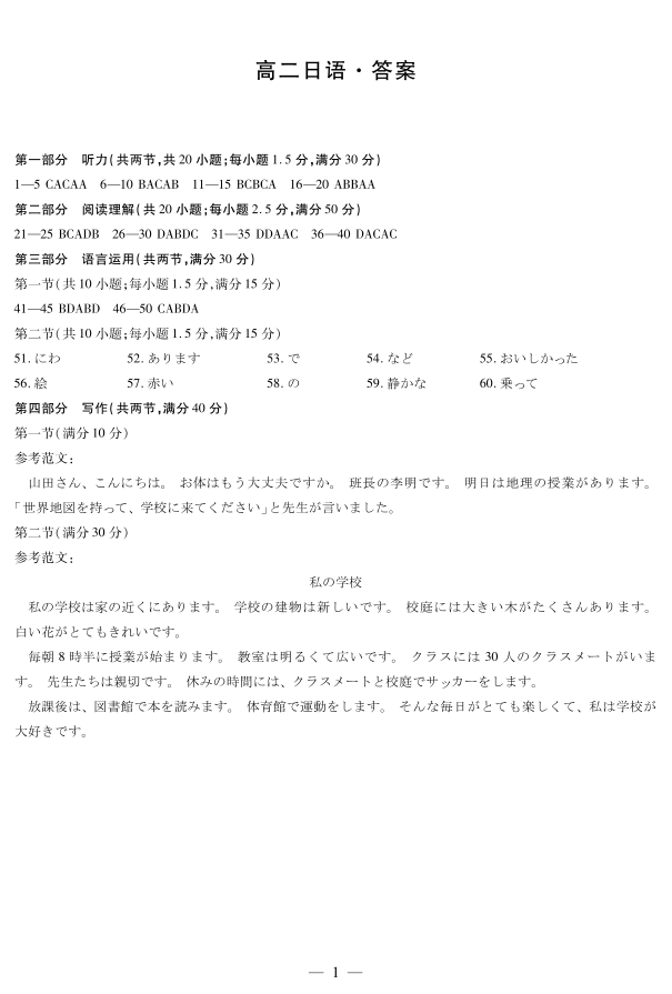 湖南省湘一联盟2025-2026学年高二上学期12月月考 日语答案.pdf