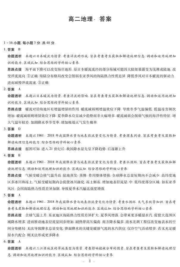 湖南省湘一联盟2025-2026学年高二上学期12月月考 地理答案.pdf
