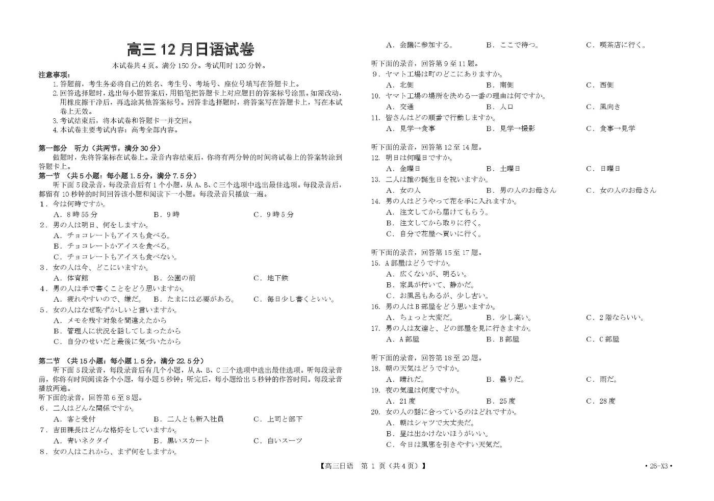 福建省龙岩市三校2025-2026学年高三第一学期12月联考 日语.pdf