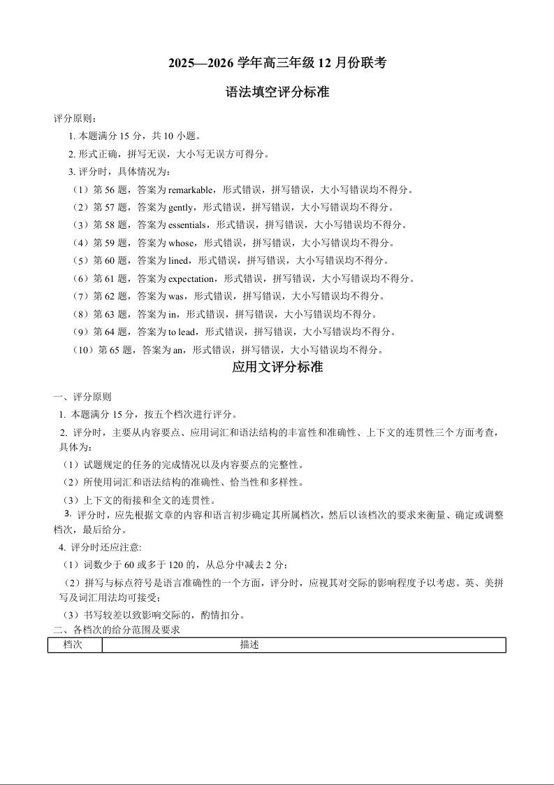 河北省衡水金卷2026届高三上学期12月联考 英语评分细则.doc