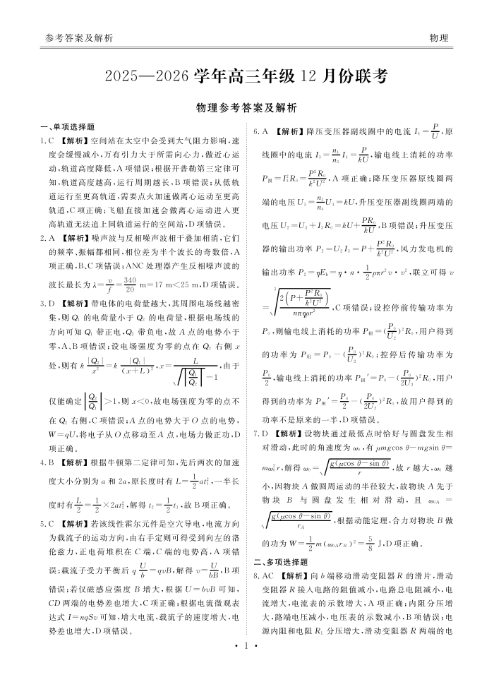 河北省衡水金卷2026届高三上学期12月联考 物理答案.pdf