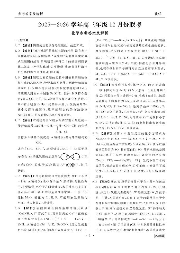 河北省衡水金卷2026届高三上学期12月联考 化学(苏教版)答案.pdf