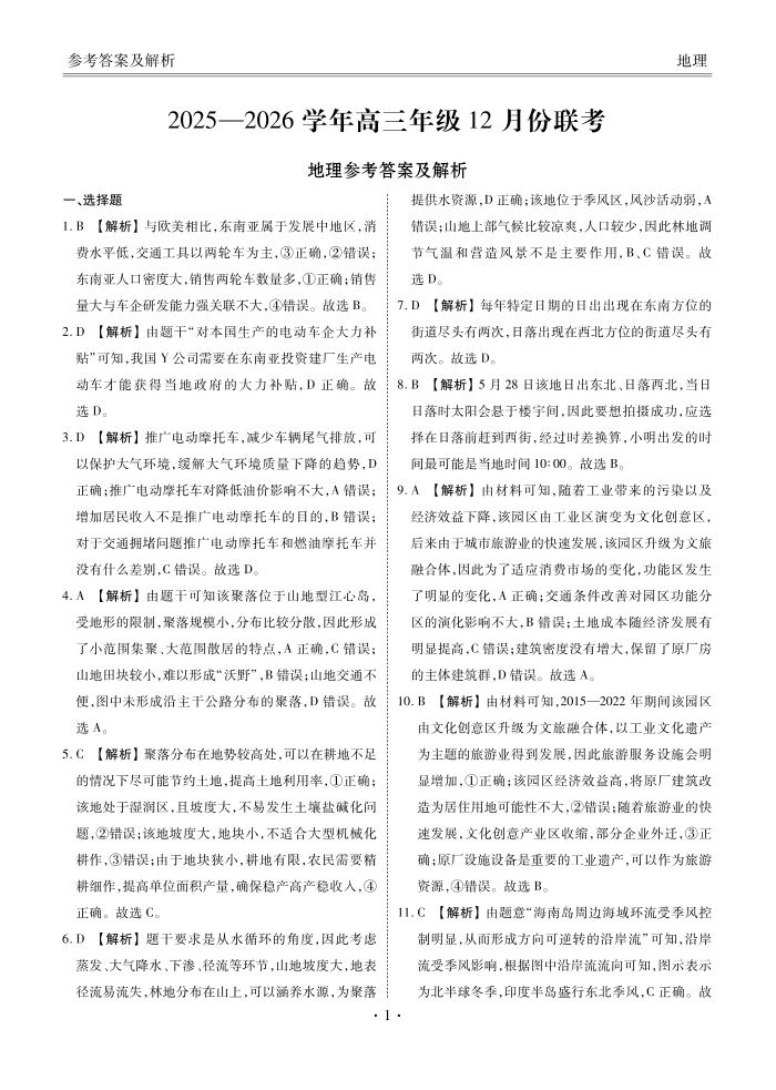 河北省衡水金卷2026届高三上学期12月联考 地理答案.pdf