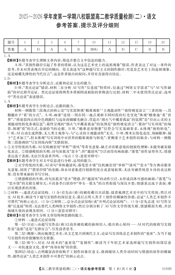 广东省·纵千文化2025~2026学年度第一学期八校联盟高二教学质量检测(二)语文答案.pdf