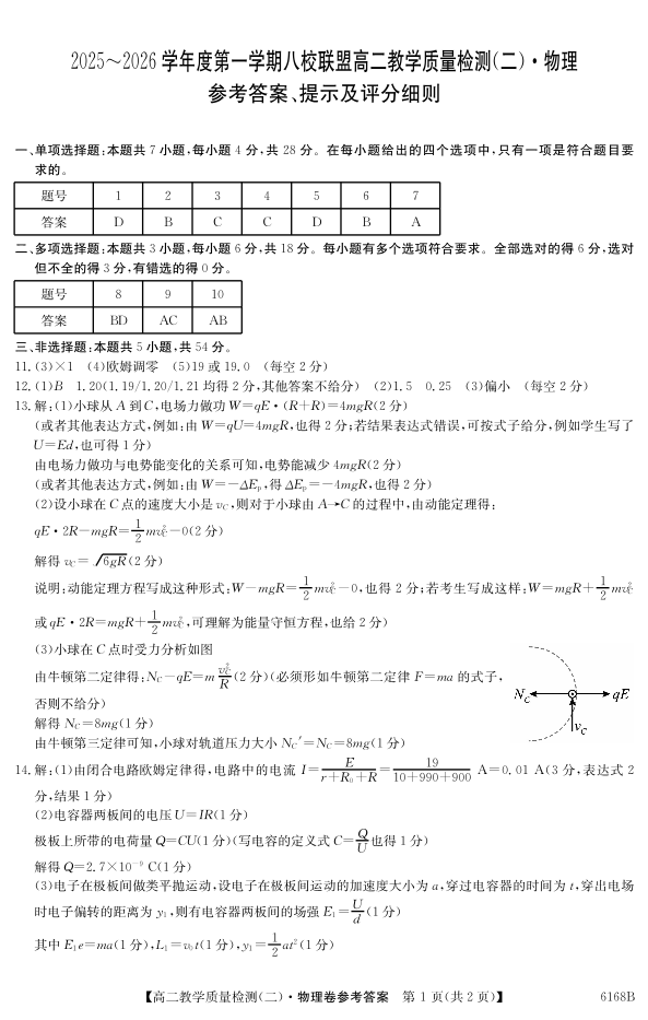 广东省·纵千文化2025~2026学年度第一学期八校联盟高二教学质量检测(二)物理答案.pdf