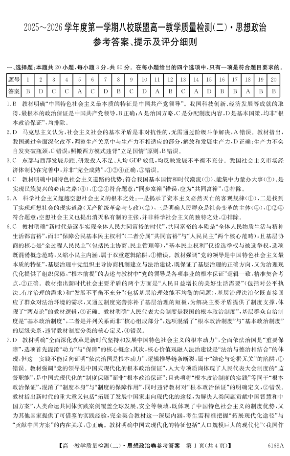 广东省·纵千文化2025~2026学年度第一学期八校联盟高一教学质量检测(二)政治答案.pdf