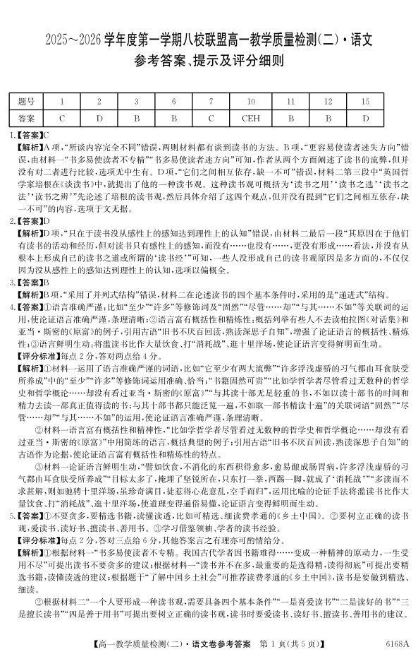 广东省·纵千文化2025~2026学年度第一学期八校联盟高一教学质量检测(二)语文答案.pdf