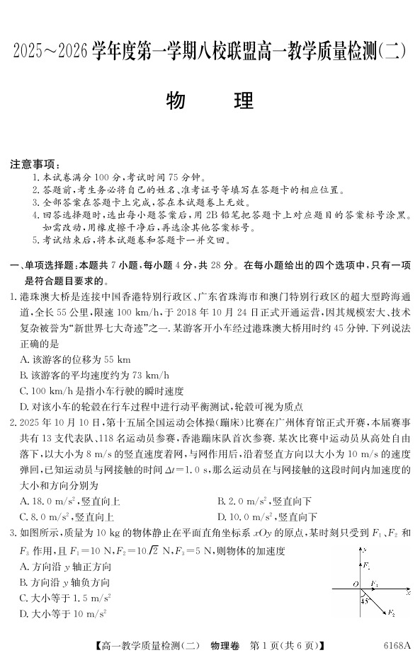 广东省·纵千文化2025~2026学年度第一学期八校联盟高一教学质量检测(二)物理.pdf