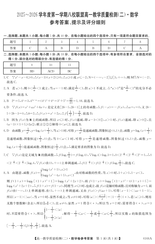 广东省·纵千文化2025~2026学年度第一学期八校联盟高一教学质量检测(二)数学答案.pdf