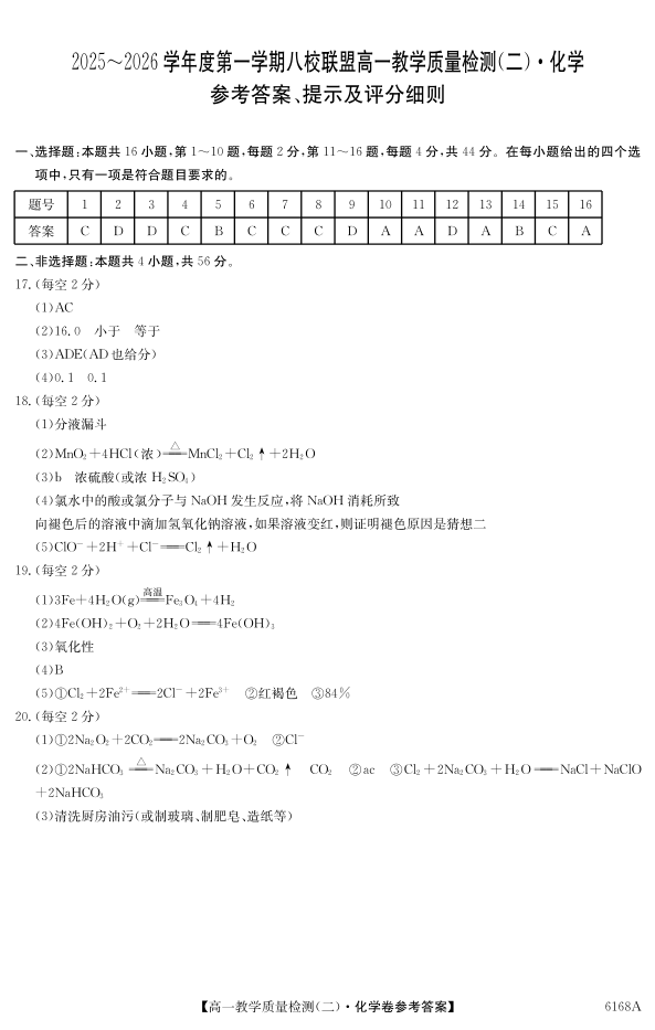 广东省·纵千文化2025~2026学年度第一学期八校联盟高一教学质量检测(二)化学答案.pdf