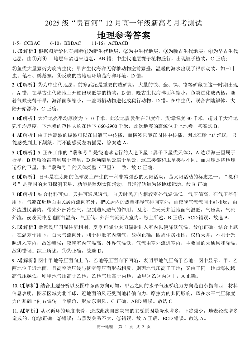 广西壮族自治区“贵百河”2025级12月高一年级新高考月考测试 地理答案.docx