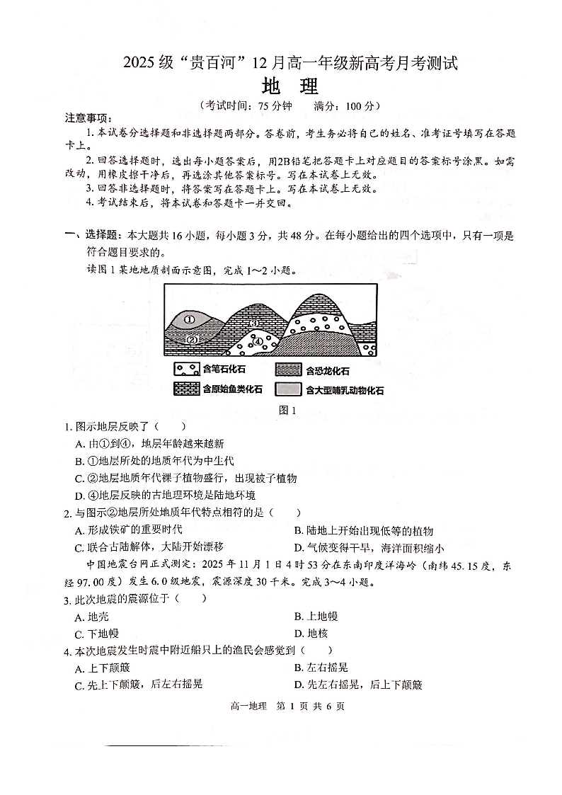 广西壮族自治区“贵百河”2025级12月高一年级新高考月考测试 地理.pdf