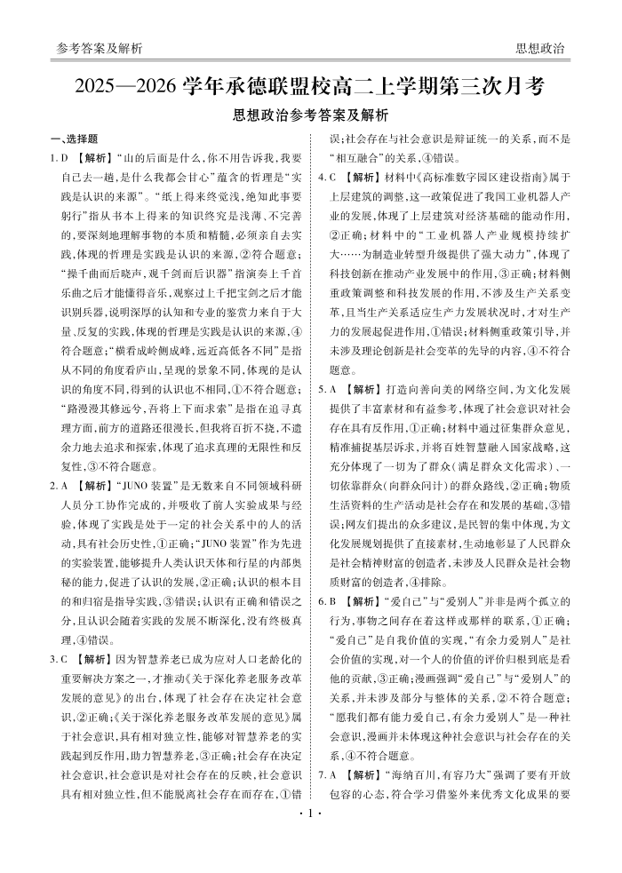 河北省衡水金卷2025-2026学年承德联盟校高二上学期第三次月考 政治答案.pdf
