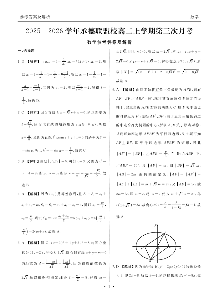 河北省衡水金卷2025-2026学年承德联盟校高二上学期第三次月考 数学答案.pdf