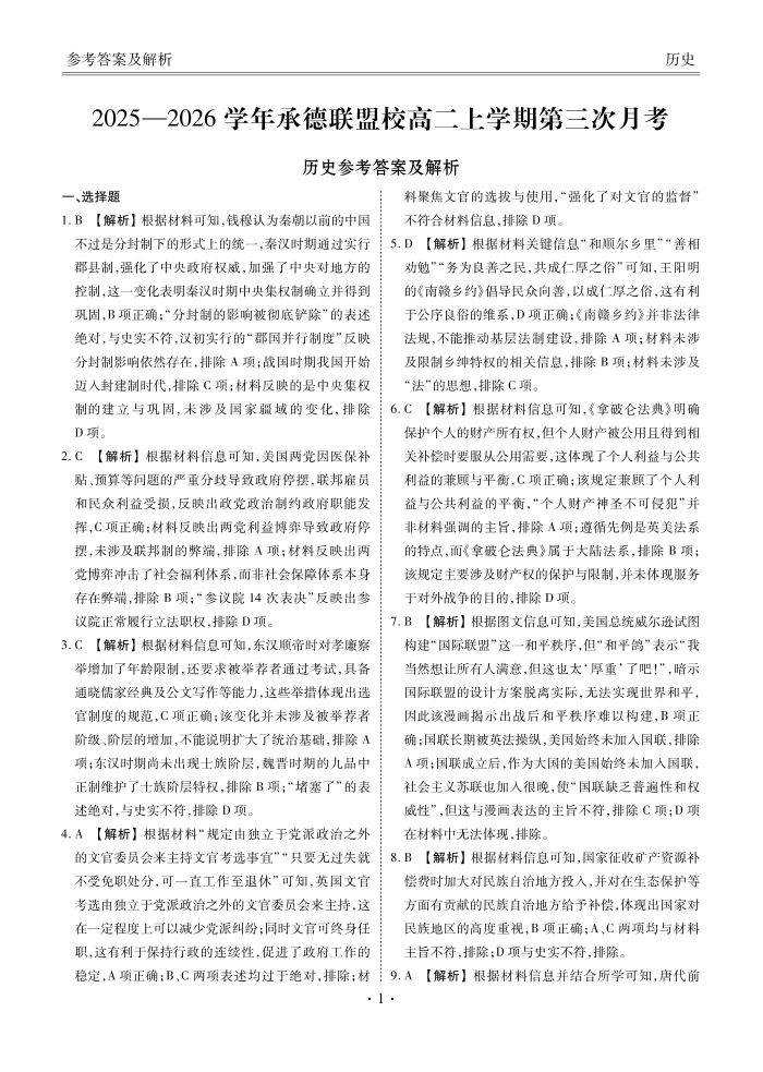河北省衡水金卷2025-2026学年承德联盟校高二上学期第三次月考 历史答案.pdf
