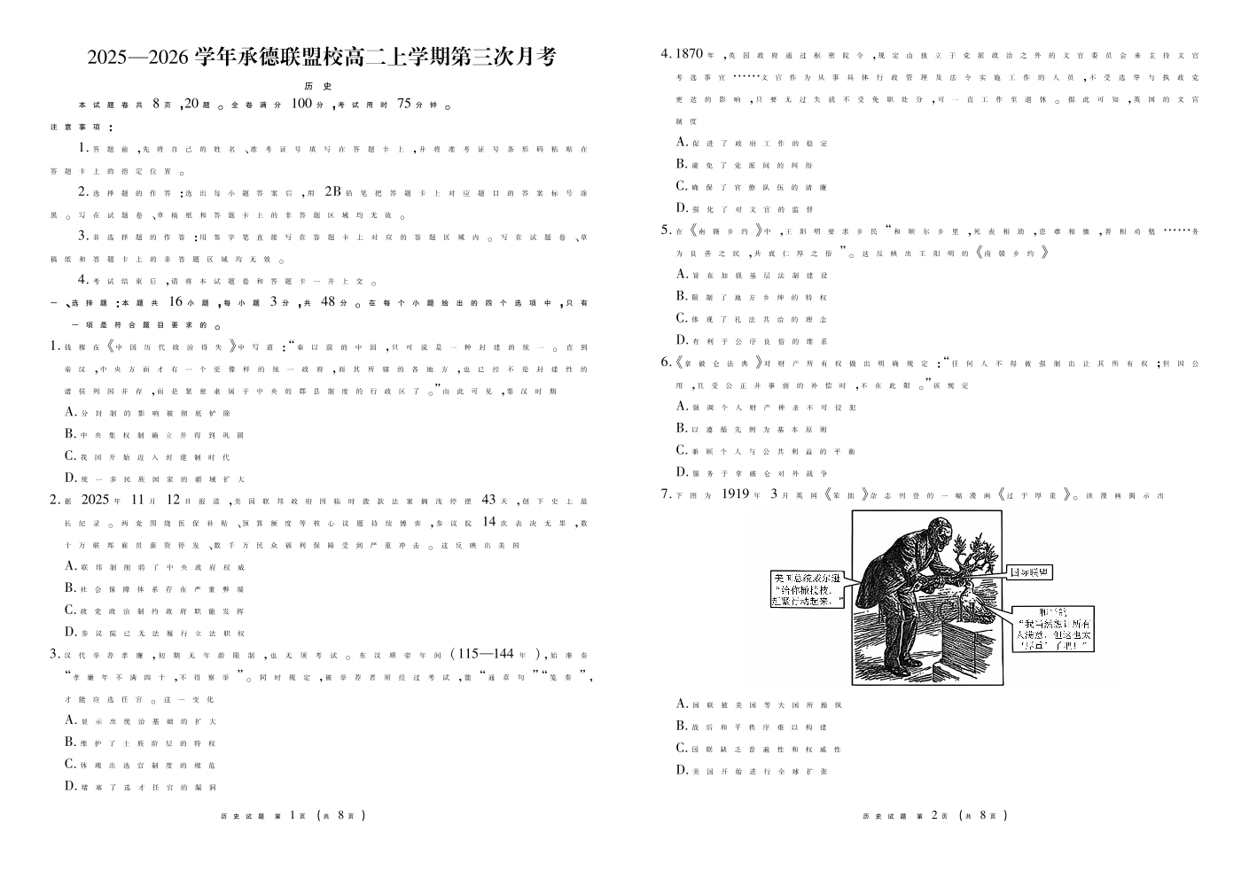 河北省衡水金卷2025-2026学年承德联盟校高二上学期第三次月考 历史.pdf