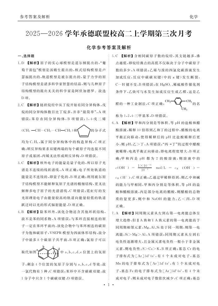 河北省衡水金卷2025-2026学年承德联盟校高二上学期第三次月考 化学答案.pdf