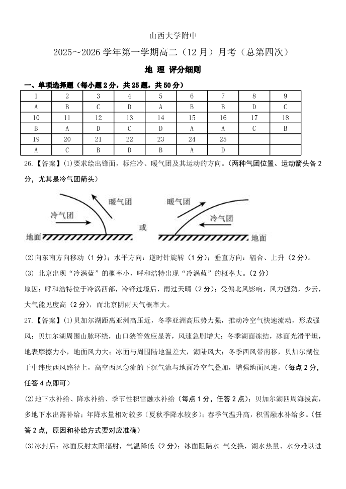 山西大学附中2025-2026学年第一学期高二(12月)月考(总第四次)地理答案.pdf
