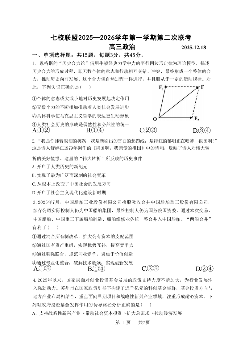 扬州市七校联盟2025-2026学年第一学期高三年级第二次联考 政治试题(含答案).docx