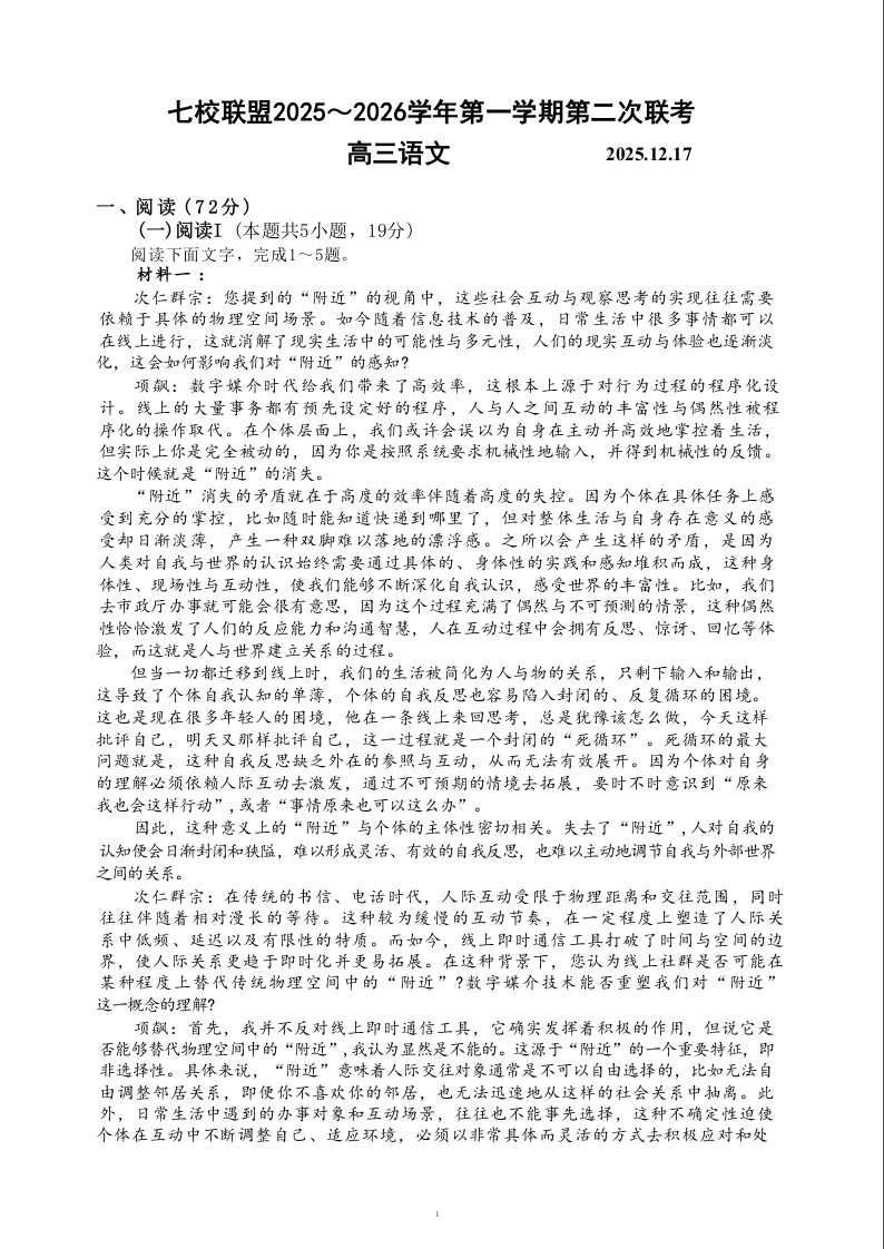 扬州市七校联盟2025-2026学年第一学期高三年级第二次联考 语文试题(含答案).docx