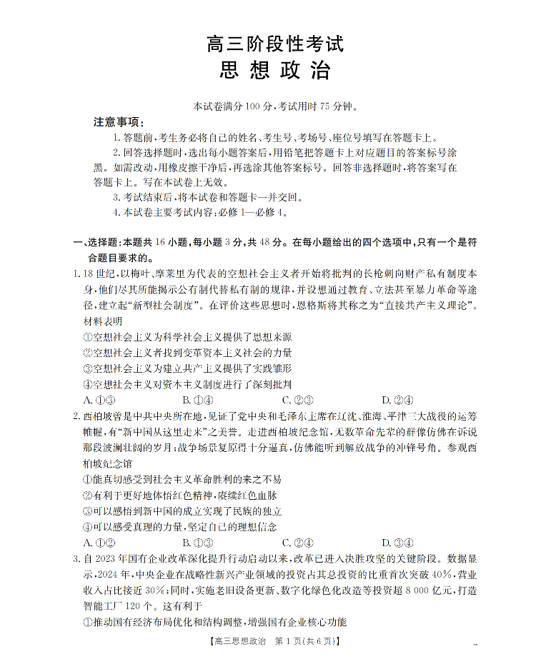 甘肃省2026届高三上学期12月阶段性考试 政治.pdf