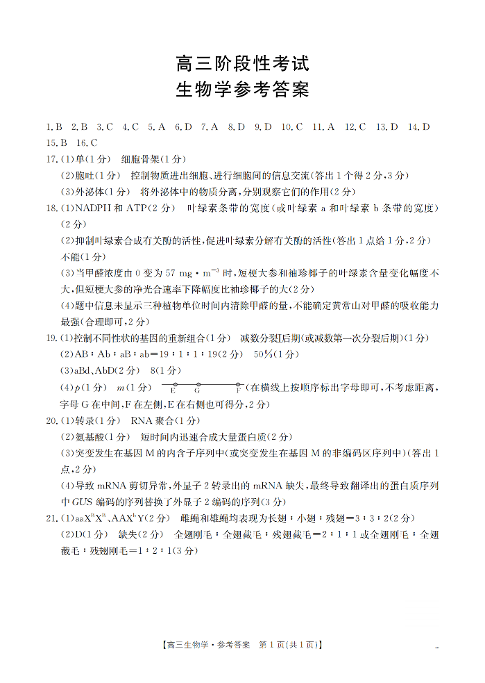 甘肃省2026届高三上学期12月阶段性考试 生物答案.pdf