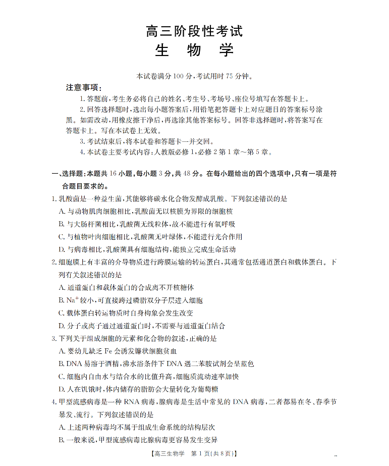 甘肃省2026届高三上学期12月阶段性考试 生物.pdf