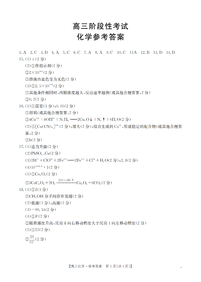 甘肃省2026届高三上学期12月阶段性考试 化学答案.pdf