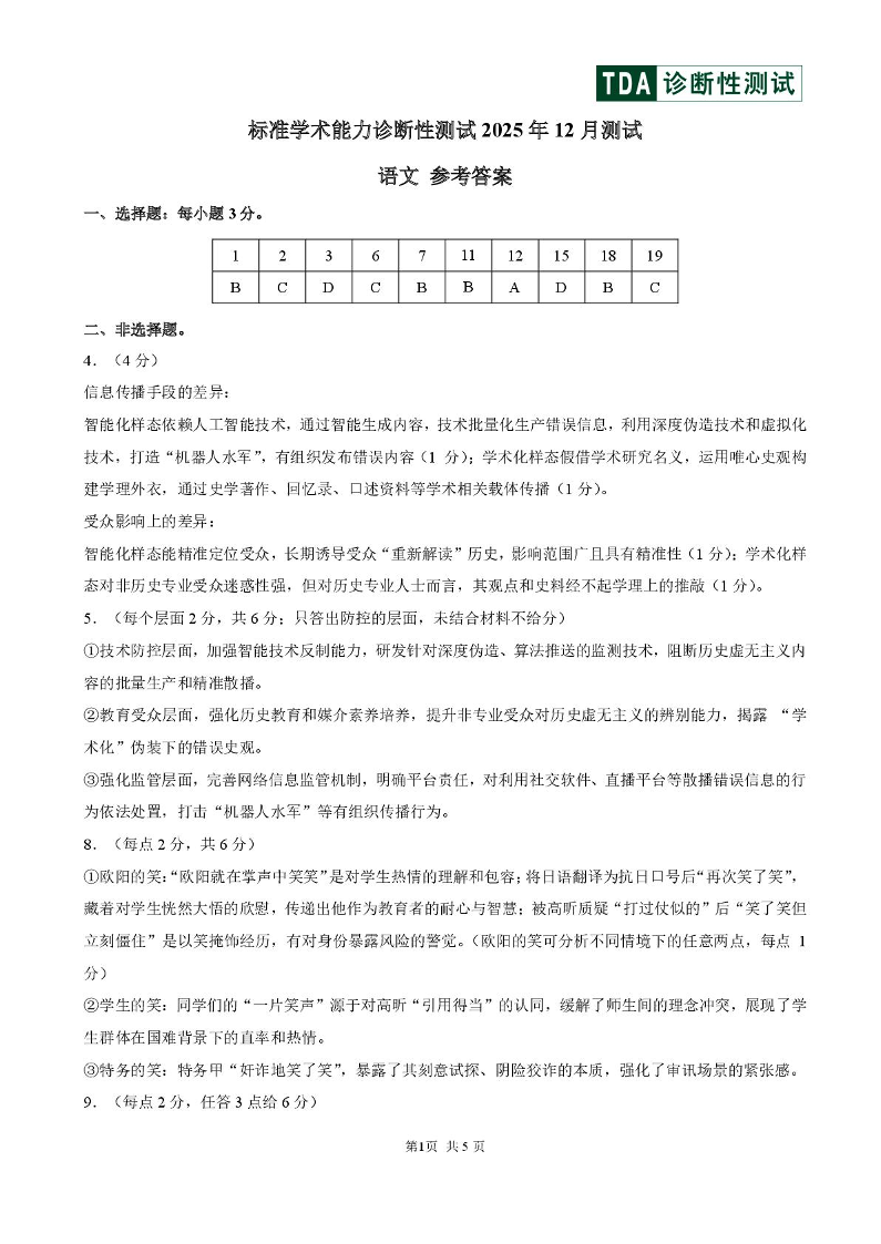 中学生标准学术能力(TDA)诊断性测试2025年12月高三测试 语文答案.pdf