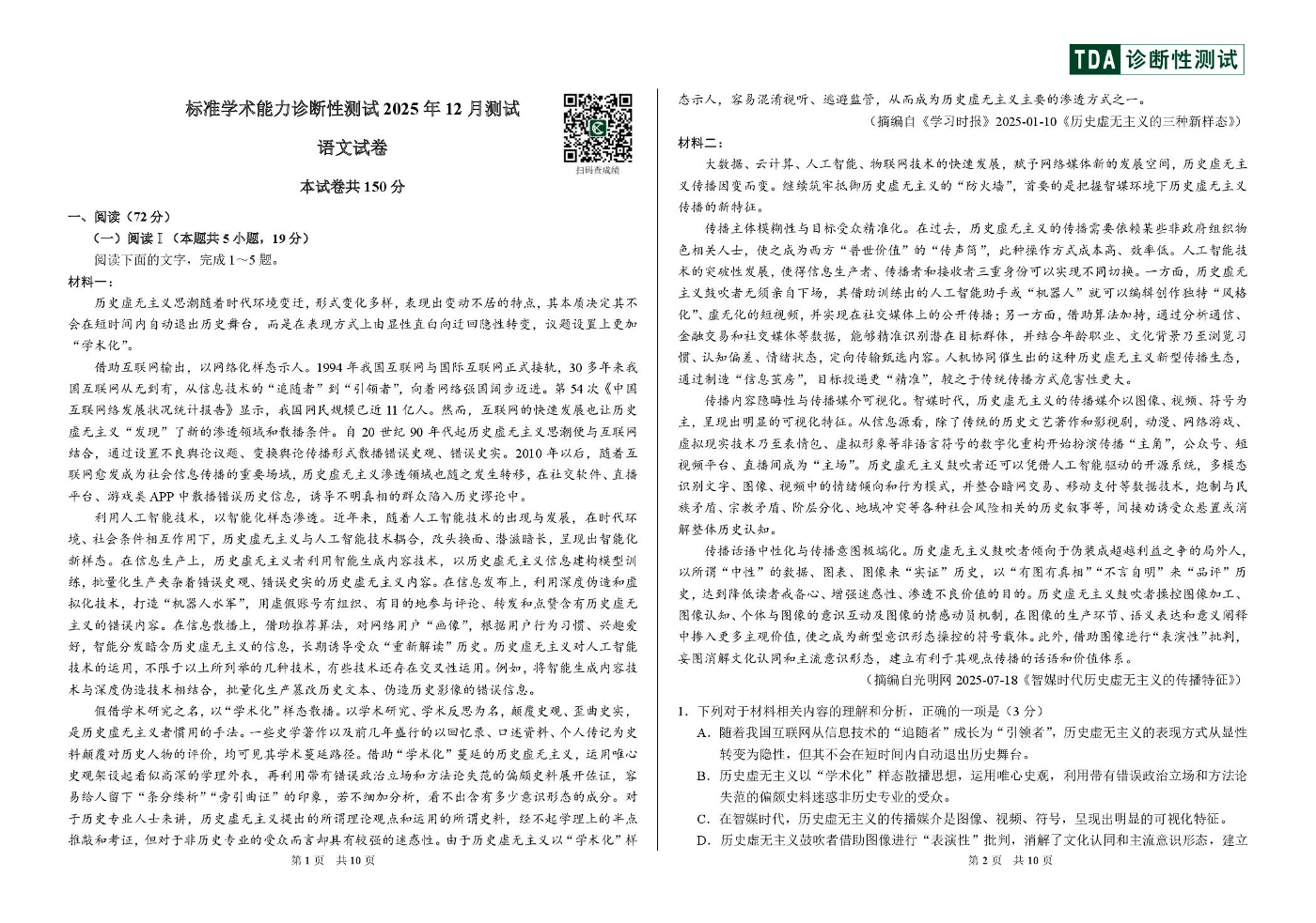 中学生标准学术能力(TDA)诊断性测试2025年12月高三测试 语文.pdf