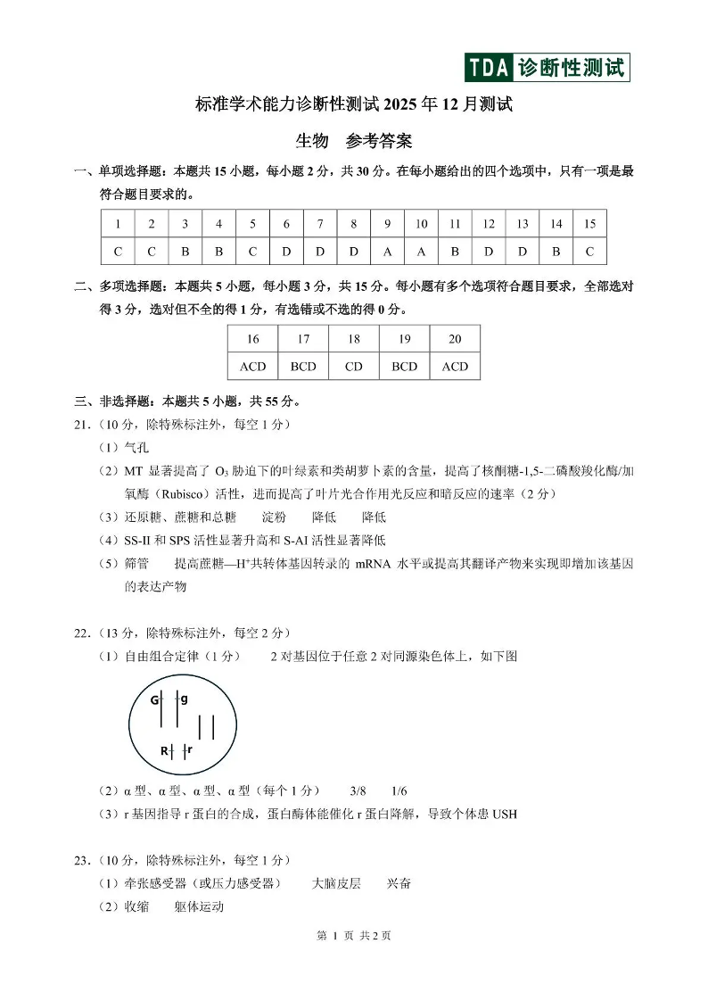 中学生标准学术能力(TDA)诊断性测试2025年12月高三测试 生物答案.pdf