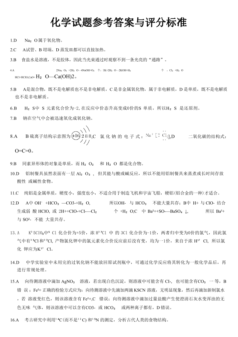 浙江省强基联盟2025年12月高一联考 化学答案.pdf