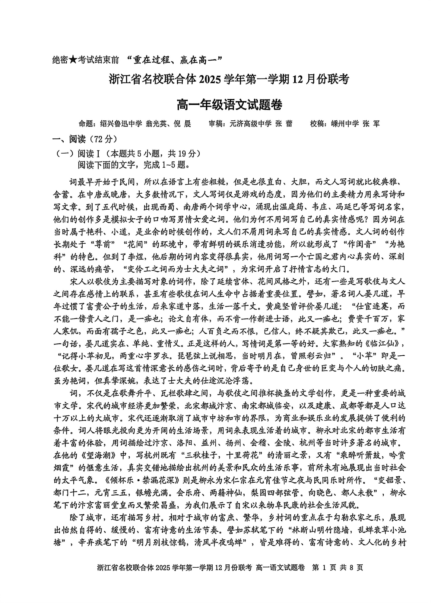 浙江省名校联合体2025学年高一上学期12月联考 语文.pdf